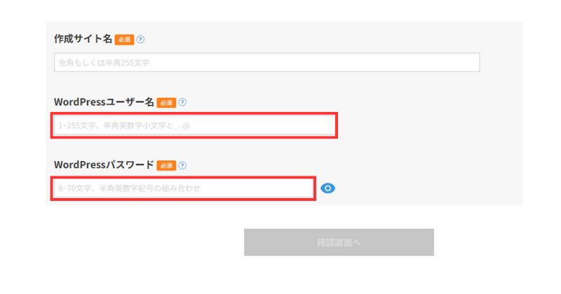 契約時に、Word Pressかんたんセットアップで登録した「ユーザー名またはメールアドレス」と「パスワード」を入力して「ログイン」します。